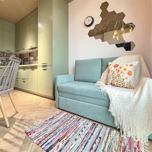 Апартаменты расположены недалеко от центра курортной Анапы. Рядом есть остановки общественного транспорта, продуктовые магазины и кафе. Недалеко – центр города, где находятся туристические места для прогулок и заведения для отдыха: Музей Горгиппия, Краеведческий музей, Парк 30-летия Победы, парки, аквапарки, музеи и набережная. До аэропорта – полчаса на авто, а до железнодорожного вокзала – всего 15 минут езды.